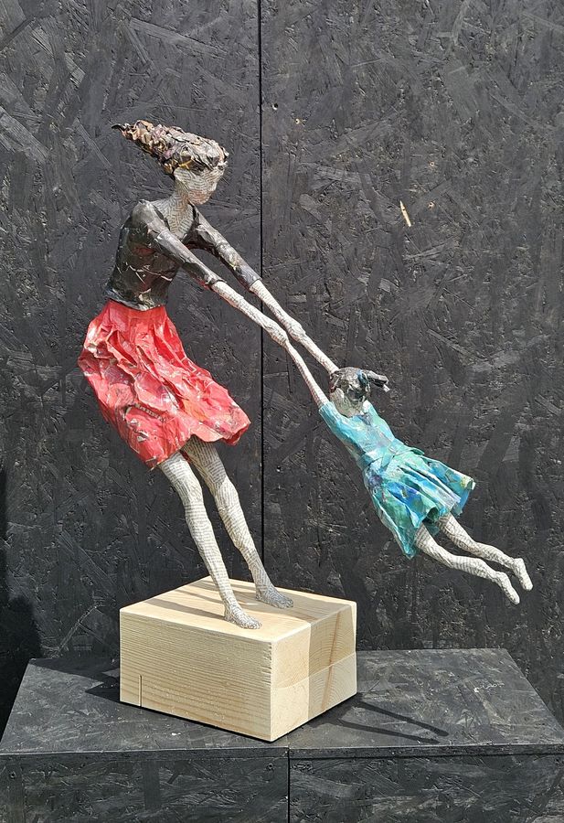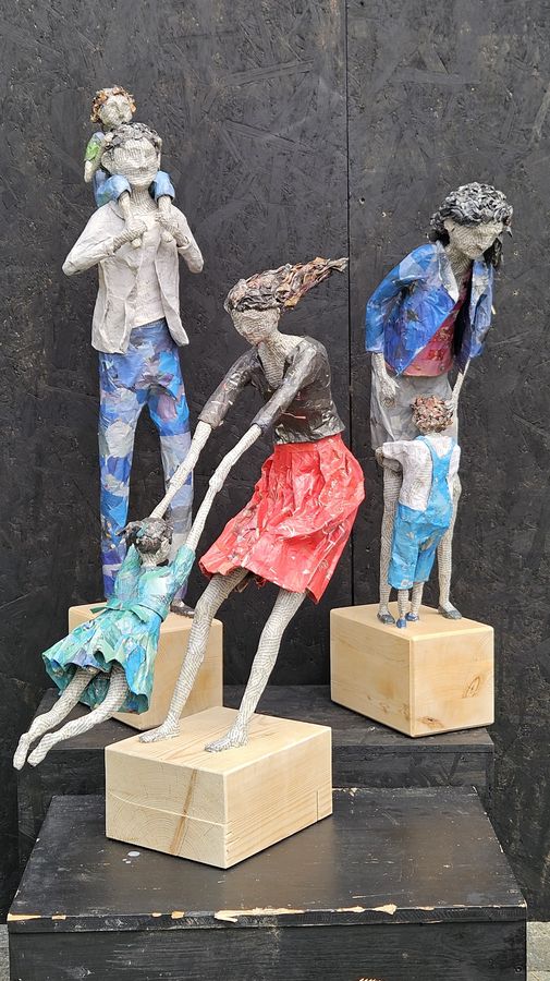 Das figürliche Arbeiten mit Papier habe ich neu entdeckt. Spielerisch und leicht tanzen die Figuren durch den Raum. Freie Haltungen und Bewegungen werden durch das Material Papier ermöglicht und der Fantasie sind keine Grenzen gesetzt.